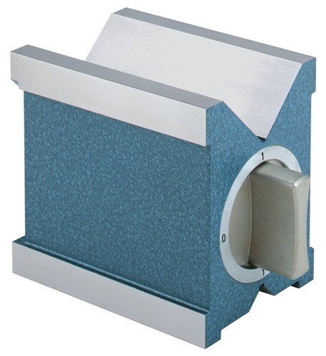 mit abschaltbarem Magnet durch Drehschalter · Schalter Aluminium eloxiert · Magnet aus Stahl · Messfläche und Prisma gehärtet · Präzisionsprisma genau eben, parallel und winkelgenau fein geschliffen · zum Messen, Anreißen und Bearbeiten von Werkstücken · Weitere technische Eigenschaften Ausführung: abschaltbarer Magnet • Material: Stahl