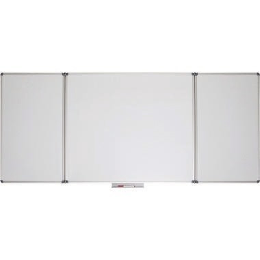 Flügel beidseitig beschreibbar. Ein Platzwunder: Große Schreibfläche auf kleinstem Raum: 3 x mehr Arbeitsfläche als benötigte Wandfläche. Designed by MAUL. Top Qualität, unschlagbares Preis-/Leistungsverhältnis. Stabile Scharniere. Arbeitsfläche aus kunststoffbeschichtetem Stahlblech, geeignet für häufigen Gebrauch. Nach unten ausziehbare Ablageschale aus Metall wird durch Kunststoffmagnetbänder gehalten. Dezentes Profil in Kombination mit Eckverbindungen in grau. Umweltschonende und sichere Verpackung: Stabiler Versandkarton. 3-fach-Nutzbar. · Tafel magnethaftend: Ja · Zubehör für die Wandbefestigung: Befestigungsmaterial · Material des Rahmens: Aluminium/Kunststoff · Maße: 300 x 100 cm (B x H) · Masse (Gewicht): 30 kg · Lenkrolle feststellbar: Nein · höhenverstellbar: Nein · Garantie gewährt: Ja · Farbe: weiß · Farbe des Rahmens: alu · beidseitig beschreibbar: Ja · Ablageschale vorhanden: Ja · abwischbar: Ja · Garantiedauer: 2 Jahre