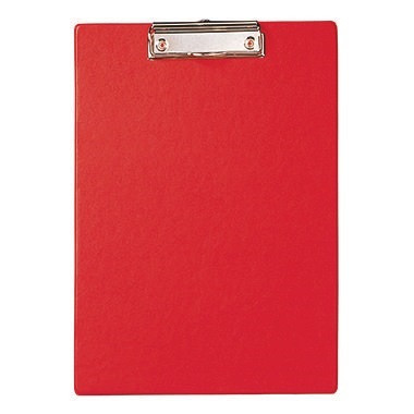 Für Preisbewusste. Flache Bügelklemme mit Griffmulde. Auch zum Aufhängen mit einschiebbarer Aufhängeöse. · Maße: 22,9 x 31,9 cm (B x H) · Garantie gewährt: Ja · Werkstoff: Karton, kunststoffummantelt · Verwendung für Papierformat: DIN A4 · Stärke: 2,8 mm · max. Klemmdicke: 8 mm · Material der Klemme: Metall · Garantiedauer: 2 Jahre · Anordnung der Lage (Klemme): oben · Farbe: rot · Farbe der Klemme: nickel · Breite: 230 mm · Aufhängeöse vorhanden: Ja · Höhe: 320 mm