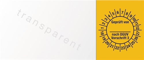 selbstklebende Folie · ideal für die Kennzeichnung aller langfristigen Wartungsintervalle · breites Anwendungsspektrum · VE = 100 Stück im Beutel · Weitere technische Eigenschaften Breite: 25mm • Länge: 60mm • Ausführung: Geprüft nach DGUV3 18-27 • Gebinde: Beutel