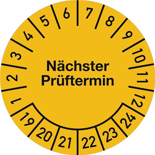 ideal für die Kennzeichnung aller langfristigen Wartungsintervalle · breites Anwendungsspektrum · VE = 100 Stück im Beutel · Weitere technische Eigenschaften Ausführung: Nächster Prüftermin 2019-2024 • Ø: 20mm • Gebinde: Beutel