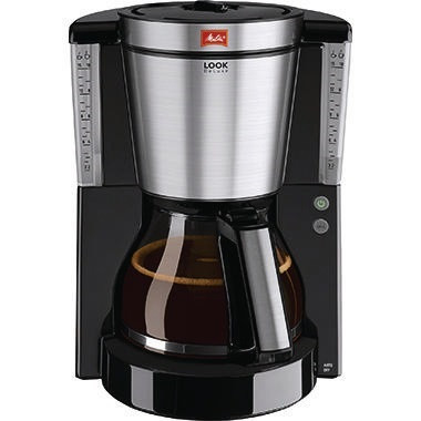 Herausnehmbarer Filtereinsatz. Tropfstopp. Transparenter Wasserbehälter. Kanne mit Tassenskalierung. Beidseitige, außen liegende, transparente Wasserstandsanzeige. Beleuchteter Ein-/Ausschalter. Integriertes Kabelfach. Heißbrüh-Verfahren: Brühtemperatur 93 °C - ideal für volle Aromaentfaltung und trinkheißen Kaffee. Aroma Selector - zur individuellen Wahl des Kaffeegeschmacks von mild bis kräftig. Sonderlackierung der Seitenteile, des Filterkörpers und des Kannengriff-Inlays in Hochglanz-Metallic. ,,Easy-Open"-Deckel. Passende Filtertüten ® : Größe 1x4®. · Leistung: 1.000 W · max. Füllmenge: 10 Tassen · Timerfunktion vorhanden: Nein · Maße: 27 x 36 x 24 cm (B x H x T) · Masse (Gewicht): 2 kg · Füllmenge des Wasserbehälters: 1,2 l · Farbe: schwarz/silber · Art der Kanne: Glaskanne · automatische Abschaltung vorhanden: Ja · höhenverstellbarer Kaffeeauslauf vorhanden: Nein