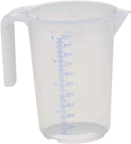 PP · transparent · mit 2 Skaleneinteilungen (blau+ neutral) · temperaturbeständig -10˚C bis +120˚C · mit offenem stapelfähigen Griff · permanente, geprägte Skala · zusätzliche, blaue bedruckte Skala für transparente Flüssigkeiten · großer Ausgiesser · bruchfeste, stabile Ausführung · kraftstoff-, öl- und säurebeständig · Weitere technische Eigenschaften Farbe: transparent