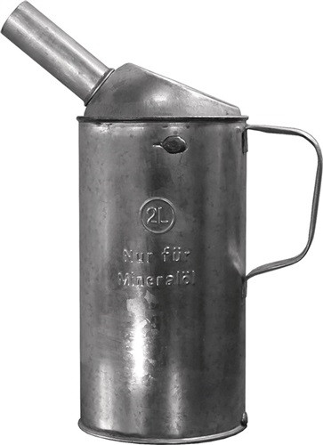 aus verzinktem Stahlblech · verbeulungssicher durch stabile Wandstärke · erhöhte Standfestigkeit · trichterförmiger, formstabiler und hitzebeständiger starrer Metallauslauf · Prägung „Nur für Mineralöl“