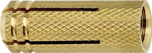 für die Verwendung in Vollbaustoffen mit metrischen Schrauben · die stark gerändelte Oberfläche gewährleistet eine hohe Verdrehsicherheit · Weitere technische Eigenschaften Material: Messing