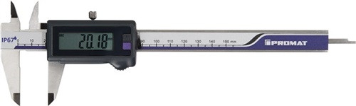 digital · IP67 · Messsystem unempfindlich gegen Staub und zeitweiliges Eintauchen in Wasser · mit Feststellschraube und Kreuzspitzen · LCD-Anzeige 10 mm Funktionen: Ein-/Ausschaltung · Schnell-Start-Funktion , automatische Einschaltung der Elektronik durch Schieb-Bewegung, Schieber sofort messbereit durch einmaliges Nullsetzen · mm/inch · Nullpunktsetzung an jeder Stelle · Einfrierung der Anzeige (Tastensperre) · Elektronik schaltet nach ca. 5 Minuten eigenständig ab · Weitere technische Eigenschaften Ableseart: digital