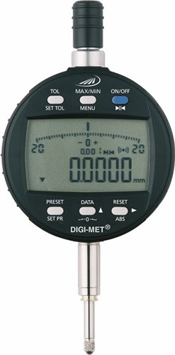 digital · IP42 · mit kombinierter Ziffern- und Skalenanzeige · LCD-Anzeige 11 mm Ziffernhöhe · drehbares Ablesefeld 280° · Abhebekappe am Messbolzenende · Einspannschaft und Messbolzen aus rostfreiem, gehärtetem Stahl · Einspannschaft (Ø 8 mm h6) · auswechselbare Tasterspitze M2,5 · Außen-Ø 60 mm Funktionen: ON/OFF · QuickStart-Elektronik · QuickLock-Funktion · Tastatursperre · Nullpunktsetzung an jeder Stelle · mm/inch · ABS (Nullsetzen der Anzeige, ohne Bezug zum PRESET zu verlieren) · Zählrichtungsumkehr · PRESET (Maßvoreinstellung) · TOL (Toleranzeingabe) · MAX/MIN Speicher zur Umkehrpunktsuche · TIR (MAX-MIN) zur Rundlaufund Ebenheitsprüfung · Faktor einstellbar · mit variablem Datenausgang USB, RS 232C, Digimatic · integrierte Schnittstelle für Funkübertragung · Weitere technische Eigenschaften Messbereich inch: 0,5inch • Ablesung inch: 0,00002inch • Außen-Ø: 60mm