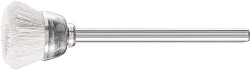 ungezopft · geeignet für leichte Bürstarbeiten wie Entgraten, Reinigen und Polieren · aufgrund des stirnseitigen Einsatzes mit der gesamten Bürstenoberfläche besonders für Bürstarbeiten auf kleinen Flächen geeignet · Bürsten mit Naturbesatz mit Polierpasten einsetzen, um das optimale Polierergebnis zu erzielen (Art.-Nr. 41 43 380 900, 41 43 380 901, 41 43 380 903, 41 43 380 904) · Schaft-Ø 3 mm · Weitere technische Eigenschaften Schaft-Ø: 3mm • max. Drehzahl: 20000min-¹