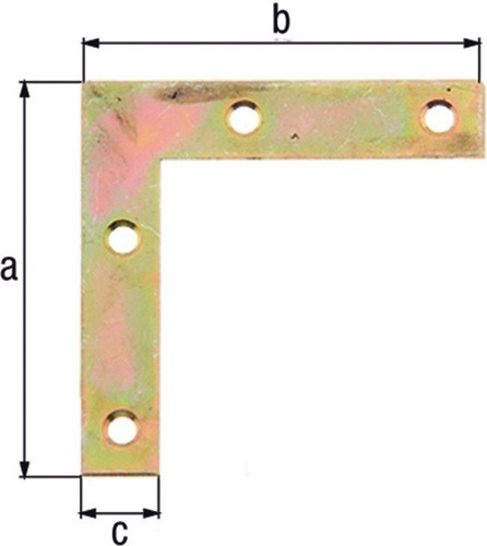 Material: Stahl, Oberfläche: galvanisch gelb verzinkt · Weitere technische Eigenschaften Oberfläche: galvanisch gelb verzinkt • Anzahl Löcher: 4 • Maß c: 10mm • Maß a: 40mm • Maß b: 40mm