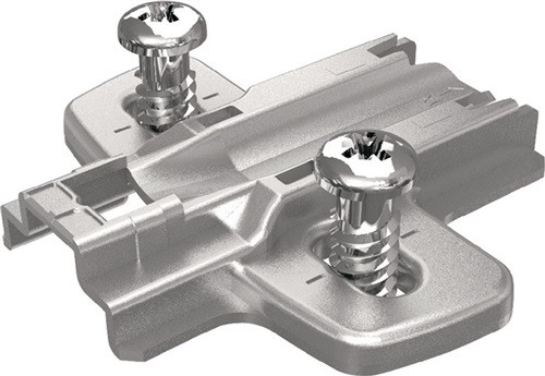 zum Anschrauben · Befestigung, vormontierte Euroschrauben · Lochabstand 32 mm · Höhenverstellung +/-3 mm · Bohrung Ø 5 x 12 mm · Abstand Lochreihe 37 mm · Weitere technische Eigenschaften Oberfläche: vernickelt • Ergänzung: Langloch-Höhenverstellung