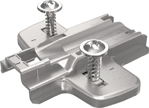 Hettich Direkt für Mittelwände · Befestigung, Pilotzapfen und asymmetrisch vormontierte Holzschrauben · Lochabstand 32 mm · Höhenverstellung +/-2,5 mm · Bohrung Ø 5 x 7,5 mm · Abstand Lochreihe 37 mm · Weitere technische Eigenschaften Oberfläche: vernickelt • Ergänzung: Langloch-Höhenverstellung