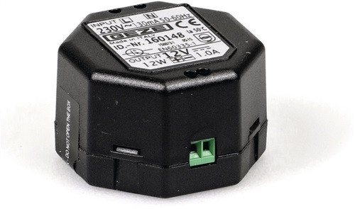 passend zu SecuLogic GCER 100 RFID-Reader · zur Montage in eine Unterputzdose · primäre Spannungsversorgung 230 V AC, 50 Hz · sekundäre Versorgungsspannung 12 V DC (+/-5%) · Ausgangsstrom 1A · Leistung 12W · Schutzart IP 20 · Weitere technische Eigenschaften Montageart: für Unterputzdose