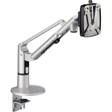 Die hochwertige NOVUS TFT Schreibtischbefestigung TSS-LiftTEC-Arm I ist ein Design-Highlight unter den Monitortragarmen und eignet sich zur Befestigung am Schreibtisch. Dank justierbarer Gasdruckfeder lässt sich der Tragarm auf das Monitorgewicht einstellen und kinderleicht stufenlos in der Höhe verstellen. Ein Kugelkopfgelenk bietet einen fast unbegrenzten Bewegungsspielraum. So ist die Einstellung der individuellen Idealposition kinderleicht und ein Haltungswechsel jederzeit möglich. Die Leichtgängigkeit der drehbaren Gelenke kann individuell eingestellt werden. Mit der Quick-Release Funktion lässt sich er Monitor schnell und einfach abnehmen. Kabelführung erfolgt durch Kabelspangen am Tragarm und durch den Fuß des Tragarms. Pivotfuktion durch den Kugelkopfgelenk möglich. Der Tischtragarm ist passend für Monitore mit VESA 75/100 Standardbefestigung. · Farbe: silber · neigbare Tragplatte vorhanden: Nein · Werkstoff: Aluminium-Druckguss · Verwendung für Tischdicke: 5-55 mm · Verwendung für Produkt: Monitore · Tragfähigkeit: 03. Aug kg · stufenlose Höhenverstellung vorhanden: Ja · Anzahl der Arme: 1 Arm · Garantie gewährt: Ja · Garantiedauer: 2 Jahre · Befestigungsmaß: 75/100 mm · Ausladung: 36,5 cm · Ausführung der Lieferzusammenstellung: inkl. Zwinge, Kabellochbefestigung, Bohrschraubbefestigung · max. Schwenkbereich: 180 °