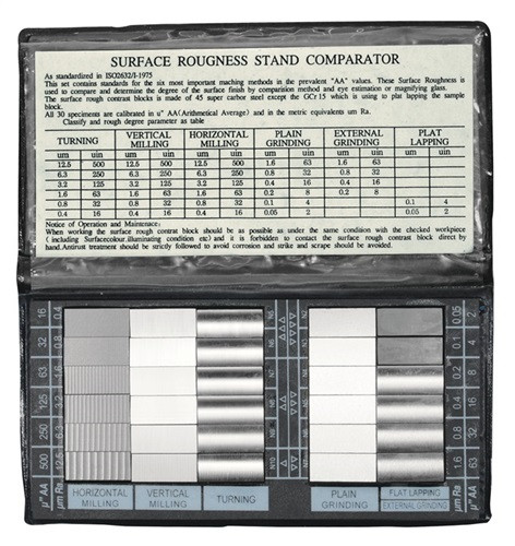 für die Vergleichsprüfung der Oberflächenbeschaffenheit nach der Sicht- und Tastmethode (mit Fingernagel) · verschleißfest und rostfrei · Bearbeitungsverfahren: allgemein Plattenlänge 120 mm x Plattenhöhe 90 mm · mit Erläuterung · Weitere technische Eigenschaften ISO-Klasse: N2-N10 • Vergleichsbereich Ra: 0,05-12,5µm • Plattenanzahl: 30St. • Plattenlänge: 120mm • Plattenhöhe: 90mm