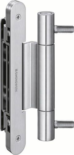 als Umrüstband für ungefälzte Objektüren an Stahlzargen · verdeckt liegende · wartungsfreie Axial-Radial-Gleitlager · DIN links / rechts verwendbar · mit komfortabler 3D verstellbarem Aufnahmeelement im Türflügel für ungefälzte Türen zum Umrüsten an Stahlzargen mit Blindeinnietmutter M10 · Gesamtlänge 160 mm · Rollen- D. 22,5 mm · Weitere technische Eigenschaften Materialstärke: 3,5mm