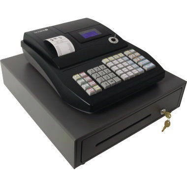 Für Handel und Restaurant. Textschreibende elektronische Registrierkasse. Programmierung komfortabel über einen PC möglich, PC-Programm und Datenkabel werden mitgeliefert. Einfachste Bedienung durch komfortable Menüführung im LCD Display. Individuelle Bongestaltung, grafisches Logo, 20 Muster vorgegeben sowie individuelle Logo-Eingaben möglich. Vorinstallierte Programmierungen für Friseur, Bäckerei und Restaurant. Programmierbare Hub-Tastatur. 1 Station Drucker mit Aufwickelspule. 4 Fremdwährungen. Restaurantmodus: 70 Tische mit komfortabler "Split"-Funktion über Display, "Außer Haus"-Funktion. · Ausführung des Displayanzeige-Umfangs: 5 Zeilen · Ausführung des Kundendisplayanzeige-Umfangs: 9 Zeichen · Backup-Speicher vorhanden: Ja · Farbe: anthrazit · Garantie gewährt: Ja · Garantiedauer: 2 Jahre · LCD-Anzeige vorhanden: Ja · LED-Anzeige vorhanden: Ja · Masse (Gewicht): 8 kg · weitere Funktionen: Bon Ein/Aus, nachträglicher Bon, Trainingsfunktion, Passwort · Verwendung für Kartenformat: SD-Karten · Verwendung für Rollenbreite: 57 mm · Ausführung der Lieferzusammenstellung: inkl. Schlüssel, Anleitung, Papierrolle, CD, USB-Kabel · Maße: 41 x 21 x 44 cm (B x H x T) · max. Auflösung: 128 x 64 Pixel · Anzahl der Fächer für Hartgeld: 8 Fächer für Hartgeld · max. Druckgeschwindigkeit: 50 mm/s · Art des Kundendisplays: LED · Anzahl der Fächer für Banknoten: 4 Fächer für Banknoten · Anzahl der PLUs: 4.799 PLUs · Anzahl der Tasten: 48 Tasten · Anzahl der Warengruppen: 99 Warengruppen · Anzahl Fußzeilen: 8 Fußzeilen · Anzahl MwSt.-Sätze: 8 MwSt.-Sätze · Anzahl Zeichen Artikeltext: 18 Zeichen · Art des Druckers: Thermodrucker · Anzahl Zeichen Logotext: 32 Zeichen · Anzahl Zeichen Warengruppentext: 18 Zeichen · Art der Stromversorgung: Netzbetrieb · Art des Anschlusses: RS 232, USB, PS/2 Scanner, SD-Karte · Anzahl Kopfzeilen: 8 Kopfzeilen · Anzahl der Bediener: 10 Bediener