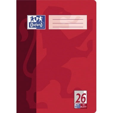 Oxford Schulheft DIN A4 kariert mit Rand 26 90g/m² 16 Bl. · Farbe des Einbandes: rot · Paper by Nature: Nein · Zertifikat/Zulassung: EU Ecolabel · Typnummer der Lineatur: 26 · Papierformat: DIN A4 · Anzahl der Blätter: 16 Bl. · EU Ecolabel: Ja · Ausführung der Lineatur: kariert mit Rand · Ausführung der Bindung: Drahtbindung · Grammatur: 90 g/m² · Forest Stewardship Council (FSC): Nein