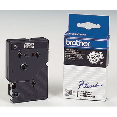 Gestaltungsmöglichkeiten in Hülle und Fülle. Dauerhaft geschützt durch den patentierten Brother Hinterband-Druck: wisch-, kratz- und wetterfest. · Druckfarbe: schwarz · Maße: 12 mm x 7,7 m (B x L) · Verwendung für Gerätetyp: P-touch 8e, -500, -2000, -3000, -5000 · Typbezeichnung des Beschriftungsbandes: TC-101 · Werkstoff: Kunststoff · Farbe des Schriftbandes: farblos · Breite: 12 mm · laminiert ausgeführt: Ja · Länge: 7.700 mm