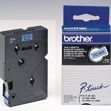 Gestaltungsmöglichkeiten in Hülle und Fülle. Dauerhaft geschützt durch den patentierten Brother Hinterband-Druck: wisch-, kratz- und wetterfest. · laminiert ausgeführt: Ja · Werkstoff: Kunststoff · Verwendung für Gerätetyp: P-touch 8e, -500, -2000, -3000, -5000 · Typbezeichnung des Beschriftungsbandes: TC-501 · Breite: 12 mm · Länge: 7.700 mm · Farbe des Schriftbandes: blau · Druckfarbe: schwarz · Maße: 12 mm x 7,7 m (B x L)