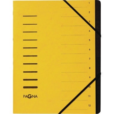 Mit schwarzem Griffregister für schnellen Zugriff auf Unterlagen. Der Deckel ist individuell beschriftbar. · Farbe des Fächerblocks: schwarz · Material des Einbandes: Pressspankarton · Maße: 24,5 x 32 cm (B x H) · Greifausschnitt vorhanden: Ja · Grammatur: 280 g/m² · Verwendung für Papierformat: DIN A4 · Breite: 245 mm · Ausführung der Tabe: 01. Dez · Art des Verschlusses: Gummizugverschluss · Anzahl der Fächer: 12 Fächer · Farbe: gelb · Flächenmaße des Einbandes: 335 g/m²