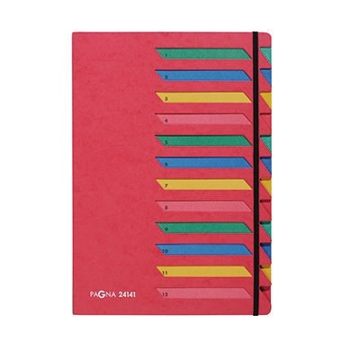 Mit dehnbarem Rücken sowie beschreibbarer Etikettenvorlage. · Beschriftungsfeld vorhanden: Ja · Material des Einbandes: Pressspan · Maße: 23 x 32 cm (B x H ) · Greifausschnitt vorhanden: Ja · Verwendung für Papierformat: DIN A4 · Farbe: rot · Ausführung der Tabe: 01. Dez · Art des Verschlusses: Gummizugverschluss · Anzahl der Fächer: 12 Fächer · Farbe des Fächerblocks: mehrfarbig · Einstecktasche vorhanden: Ja
