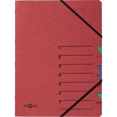 Mit buntem Griffregister. · Grammatur: 265 g/m² · Material des Einbandes: Pressspankarton · Verwendung für Papierformat: DIN A4 · Maße: 24 x 32 cm (B x H) · Höhe: 320 mm · Greifausschnitt vorhanden: Ja · Farbe: rot · Farbe des Fächerblocks: mehrfarbig · Breite: 240 mm · Ausführung der Tabe: 01. Jul · Anzahl der Fächer: 7 Fächer · Art des Verschlusses: Gummizugverschluss