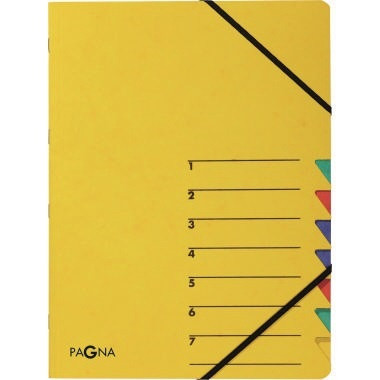 Mit buntem Griffregister. · Farbe: gelb · Material des Einbandes: Pressspankarton · Maße: 24 x 32 cm (B x H) · Höhe: 320 mm · Grammatur: 265 g/m² · Verwendung für Papierformat: DIN A4 · Farbe des Fächerblocks: mehrfarbig · Breite: 240 mm · Ausführung der Tabe: 01. Jul · Art des Verschlusses: Gummizugverschluss · Anzahl der Fächer: 7 Fächer · Greifausschnitt vorhanden: Ja