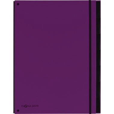 Ideal zum Vorsortieren von Belegen, Unterlagen und Informationen.Ideal auch zum Terminieren von Vorgängen etc. Taben aus Polypropylen in schwarz. Mit verstärktem und dehnbarem Rücken. · Breite: 265 mm · Verwendung für Papierformat: DIN A4 · Höhe: 340 mm · Maße: 26,5 x 34 cm (B x H) · Werkstoff: Karton · Farbe: lila · Farbe des Fächerblocks: schwarz · Ausführung des Inhalts (bezüglich der Hauptausstattungsteile: dehnbarer Rücken · Ausführung der Tabe: blanko · Ausführung der Lieferzusammenstellung: inkl. verstärktem, dehnbarem Rücken · Art des Verschlusses: Gummizugverschluss · Anzahl der Sichtlöcher: 3 Sichtlöcher · Anzahl der Fächer: 7 Fächer · Material des Einbandes: Karton, Polypropylenfolie kaschiert · Beschriftungsschild auswechselbar: Nein