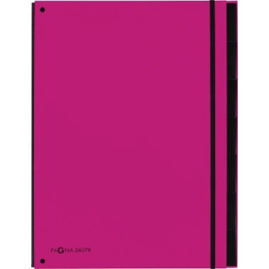 Ideal zum Vorsortieren von Belegen, Unterlagen und Informationen.Ideal auch zum Terminieren von Vorgängen etc. Taben aus Polypropylen in schwarz. Mit verstärktem und dehnbarem Rücken. · Farbe des Fächerblocks: schwarz · Anzahl der Fächer: 7 Fächer · Verwendung für Papierformat: DIN A4 · Material des Einbandes: Karton, Polypropylenfolie kaschiert · Maße: 26,5 x 34 cm (B x H) · Höhe: 340 mm · Farbe: dunkelrosa · Werkstoff: Karton · Breite: 265 mm · Beschriftungsschild auswechselbar: Nein · Ausführung des Inhalts (bezüglich der Hauptausstattungsteile: dehnbarer Rücken · Ausführung der Tabe: blanko · Ausführung der Lieferzusammenstellung: inkl. verstärktem, dehnbarem Rücken · Anzahl der Sichtlöcher: 3 Sichtlöcher · Art des Verschlusses: Gummizugverschluss
