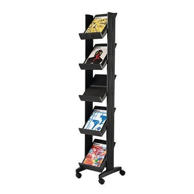 Seitenprofile: Polystyrol mit verstärkender Metall- Innenstruktur. 5 Auflagen: Polystyrol im Injektionsverfahren. Hohe Kapazität: 1 Format pro Ebene (24 x 32 cm. 1 x 350 Blätter (80g/ m²)). Auflagenmaß: 27,5 x 32,7 cm (B x T). Anschlagkante 4 cm. Auflagen im Winkel (0°-75 °) und in der Höhe (alle 2 cm) verstellbar. Zerlegte Lieferung. Einfacher und schneller Aufbau: 5 Minuten, ohne Werkzeug und Kleinteile. · Maße: 35 x 167,5 x 38,5 cm (B x H x T) · Tiefe: 38,5 mm · Höhe: 167,5 mm · Masse (Gewicht): 9 kg · Lenkrolle feststellbar: Ja · Farbe des Gestells: schwarz · Breite: 35 mm · Ausführung der Lieferzusammenstellung: inkl. 4 leichtlaufende Kugelrollen · Anzahl der Fächer: 5 Fächer · Werkstoff: Polystyrol · Farbe: schwarz