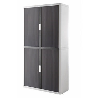 Rollladenschrank, mit revolutionärem Stecksystem, ohne Werkzeug, Schrauben, Kleinteile. Kratz- und stoßfester Korpus. Rolläden aus Polypropylen-Lamellen, die sich komplett in die Seitenteile schieben lassen. · Rollen vorhanden: Nein · Werkstoff der Front: Kunststoff · Schließung vorhanden: Ja · Schloss vorhanden: Ja · Tiefe des Korpus: 415 mm · Tiefe: 415 mm · Tragfähigkeit: 75 kg · Werkstoff der Rückwand: Polystyrol · Werkstoff des Fachbodens: Metall · Werkstoff des Gestells: Polystyrol · Werkstoff: Polystyrol · Werkstoff des Korpus: Metall/Polystyrol · Werkstoff des Sockels: Polystyrol · Anzahl der Ordnerhöhen: 4 Ordnerhöhen · Anzahl der Fachböden: 4 Fachböden · Montageart bei Lieferung: teilmontiert · Anzahl der Schlüssel: 2 Schlüssel · Breite: 1100 mm · Farbe der Front: anthrazit · Farbe des Korpus: grau · Garantie gewährt: Ja · Höhe des Fachbodenrasters: 8 cm · Höhe des Verstellbereichs: 80 mm · Höhe: 2043 mm · Innenmaße: 86 x 37,5 cm (B x T) · Maße: 110 x 204 x 41,5 cm (B x H x T) · Garantiedauer: 5 Jahre · Breite des Korpus: 110 cm