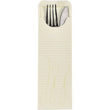 Die Bestecktasche schützt das Besteck und die Serviette hygienisch vor Schmutz. · Ausführung der Lieferzusammenstellung: inkl. farbiger Bistroserviette · Packungsmenge: 100 St./Pack. · Material: Papier · Farbe: creme · Maße: 7,3 x 23,5 cm (B x L)