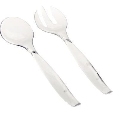 2-teiliges Salatbesteck (Salatgabel, Salatlöffel) extra stabil und mehrfach verwendbar. · Material: Polystyrol · Farbe: glasklar · Länge: 25 cm