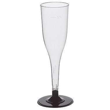 Sektgläser mit schwarzem Fuß. · Durchmesser: 5,1 cm · Farbe: glasklar · Fassungsvermögen des Trinkgefäßes: 100 ml · Höhe: 18 cm · Werkstoff: Polystyrol · Ausführung des Inhalts (Packung): 20 St./Pack.