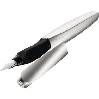 Twist - das neue Trend-Schreibgerät für junge Leute. Trendiger Füllfederhalter in gedrehtem Look. Soft-Griffzone für langes und unverkrampftes Schreiben. Perfekt für den Dauereinsatz in der Schule und zu Hause. · geeignet für Händigkeit: Linkshänder, Rechtshänder · Typbezeichnung der Tintenpatrone: 4001 · Typbezeichnung der Strichstärke: M · Schreibfarbe: blau · Material des Schaftes: Kunststoff · Ausführung der Feder: fein-gerade · Kappe umsteckbar: Ja · Farbe des Schaftes: silber · Farbe der Kappe: silber · Ausführung der Griffzone: ergonomisch · Material der Schreibfeder: Edelstahl