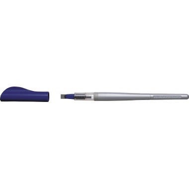 Mit Schraubkappe und lasergeschnittener Feder. Ideal zum Gestalten von Tisch- oder Geburtstagskarten. Spitze aus zwei parallelen Platten für eine schöne, klare Handschrift. · Material des Clips: Kunststoff · Material der Schreibfeder: Edelstahl · Typbezeichnung der Tintenpatrone: Tintenpatrone 1108 · Strichstärke: 6 mm · Farbe des Clips: blau · Farbe der Kappe: blau · Ausführung der Lieferzusammenstellung: inkl. 1 Patrone 1108 schwarz, 1 Patrone 1108 rot, Spitzenrei · Ausführung der Griffzone: rund · Material des Schaftes: Kunststoff · Farbe des Schaftes: silber/transparent
