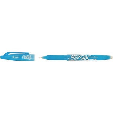 Innovativer, radierbarer Tintenroller mit Kappe und Clip. Ausgestattet mit der patentierten, metamorphen FRIXION Tinte. Mittels der Kunststoffspitze am Schaftende und der erzeugten Reibungswärme (ab ca. 60 °C) kann das Geschriebene weggerieben werden. Kälte bewirkt den Umkehreffekt. Eine kurze Zeit im Gefrierfach (ab ca. -10 °C) lässt die Schrift wieder erscheinen. · Material des Clips: Kunststoff · Material des Schaftes: Kunststoff · Mine auswechselbar: Ja · Schreibfarbe: hellblau · Material der Spitze: Edelstahl · Typbezeichnung der Mine: 2261 · Farbe des Clips: hellblau · Strichstärke: 0,4 mm · Ausführung der Griffzone: gummiert · Farbe des Schaftes: hellblau · dokumentenecht: Nein · Clip vorhanden: Ja · Bezeichnung der Schreibflüssigkeit: Flüssigtinte · Ausführung der Vorschubmechanik: Kappenmodell · Ausführung der Spitze: Rundspitze · kann einige Tage offen liegen bleiben ohne einzutrocknen: Nein