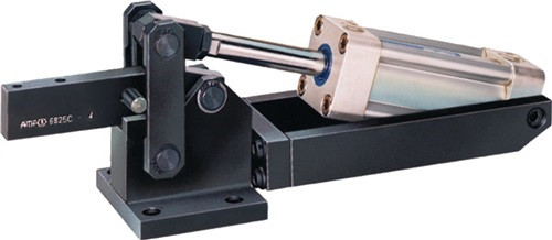 schwer · mit horizontalem Zylinderanbau · Vergütungsstahl brüniert · die in DU-Buchsen laufenden, wartungsfreien Lagerbolzen sind vergütet, geschliffen und mit Sicherungsringen montiert · mit Magnetkolben für Endlagenabfrage · der Spanner ist anschlussfertig und besteht aus: · Mechanik-Element Nr. 6815C · doppeltwirkendem FESTO-Pneumatikzylinder  Anwendung: Diese Pneumatikspanner sind in Maschinenbauqualität ausgeführt und eignen sich zum Einbau in Transferstraßen und Sondermaschinen. Öffnungs- und Spannposition des Spanners kann elektrisch überwacht und somit in automatische Fertigungsabläufe integriert werden. ·  Weitere technische Eigenschaften S: 53mm • A: 20mm • C: 55mm • D: 11mm • F4: 3,5kN • R1: 26mm • Kolben-Ø: 50mm • G: 83 • H1: 220mm • H2: 12 • L: 90mm • O: M16 x 1,5mm • T: 315mm • W: 16mm • F5: 1kN • I: 40mm • F: 10mm • B: 90mm • Kolbenhub: 100mm • K: 11mm • U: 40mm • R: G1/4mm • V: 101 • E: 60mm • M: 105mm • H: 61mm • F3: 2,5kN • N: 129mm