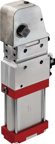 schwer · doppelt wirkend · max. Betriebsdruck 6 bar · mit stufenlos verstellbarem Öffnungswinkel im Bereich von 45° bis 135° · Gehäuse aus Aluminium, rot eloxiert · pneumatische Endlagendämpfung, Selbstabschaltung, standardmäßig mit Induktivabfrage 24V (Pepperl+Fuchs) · Lieferung ohne Spannarm Zubehör (nicht im Lieferumfang enthalten): Spannarmvarianten: · Spannarm mittig, rechts und links · ohne Anschlussstecker M12 ·  Weitere technische Eigenschaften S: 22mm • C: 107mm • H4: 55mm • C3: 7,5mm • C4: 7,5mm • D: M8 • C6: 54mm • D1: 10mm • Kolben-Ø: 80mm • C5: 54mm • H5: 36,5mm • L2: 32¹mm • K1: 23mm • C7: 3,5mm • L1: 11mm • H1: 361mm • D2: M10 • H2: 211mm • T2: 11mm • L: 54mm • Spannmoment bei 5 bar: 380Nm • T3: 13mm • T1: 10mm • N1: 45¹mm • I: 28mm • K2: 10mm • B: 144mm • L3: 27mm • N2: 55mm • K: 50mm • C1: 93¹mm • H: 51,5mm • L4: 12mm • H3: 61mm • C2: 12,5mm • D3: 8mm • N: 30¹mm