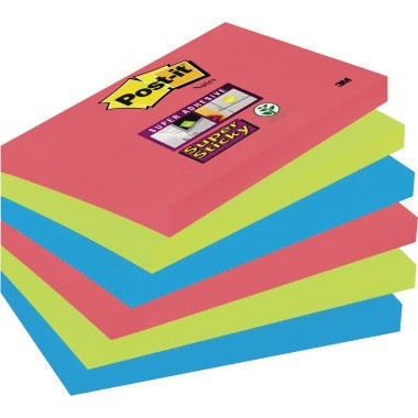 Nicht zu übersehen: Post-it® Super Sticky Notes in signalstarken Farben. Ob als Gedankenstütze, zum und Organisieren von Projekten - in Büro, Schule und Alltag sind sie nicht mehr wegzudenken. Post-it® Super Sticky Notes haften sicher praktisch überall. · Breite: 127 mm · rückstandsfrei entfernbar: Ja · PEFC: Ja · mehrfach verwendbar: Ja · Werkstoff: Papier · Maße: 127 x 76 mm (B x H) · Farbe: 2 x mohnrot, 2 x neongrün, 2 x ultrablau · Ausführung des Papiertyps: elementar chlorfrei gebleicht · Ausführung des Inhalts (Packung): 6 Block/Pack. · Anzahl der Blätter: 90 Bl./Block · Höhe: 76 mm · Grammatur: 74 g/m²