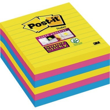 Ob im Büro oder Alltag: Von den extra zuverlässigen Post-it® Super Sticky Notes sollten Sie immer genügend zur Hand haben. Haften auch auf schwierigen Oberflächen, wie z.B. Monitore, Telefone, Türen oder Griffe von Einkaufswagen. · Farbe: ultragelb, ultrablau, ultrapink · rückstandsfrei entfernbar: Ja · mehrfach verwendbar: Ja · Werkstoff: Papier · Ausführung des Inhalts (Packung): 6 Block/Pack. · Ausführung der Lineatur: liniert · Anzahl der Blätter: 90 Bl./Block · Maße: 101 x 101 mm (B x H) · Grammatur: 74 g/m²