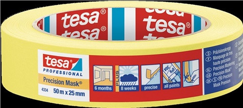 extrem dünn für präzise, scharfe Lackkanten · gute Positionierbarkeit und Verklebung auf verschiedenen Untergründen · leichte rückstandsfreie Entfernbarkeit · Klebmasse: Acrylat · Gesamtdicke: 0,09 mm · Klebkraft: 1,85 N/cm · Reißkraft: 30 N/cm · Reißdehnung: 4 % · Weitere technische Eigenschaften Farbe: gelb • Gesamtdicke: 0,09mm • Reißkraft: 30N/cm • Modell: 4334 • Klebkraft: 1,85N/cm