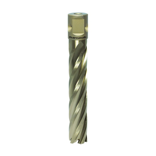 Karnasch GOLD-LINE Kernbohrer sind die am meisten verwendeten nicht beschichtete HSS-XE Kernbohrer. Durch spezial GOLD-TECH Oberflächenbehandlung + Vollschliff + HSS-XE Spezialstahl hervorragend zum Bohren in Stähle bis 900N und sogar geeignet für Edelstähle.