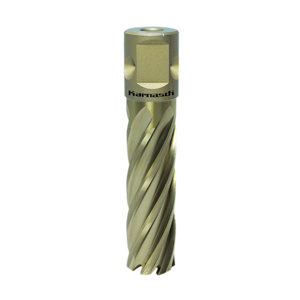 Karnasch GOLD-LINE Kernbohrer sind die am meisten verwendeten nicht beschichtete HSS-XE Kernbohrer. Durch spezial GOLD-TECH Oberflächenbehandlung + Vollschliff + HSS-XE Spezialstahl hervorragend zum Bohren in Stähle bis 900N und sogar geeignet für Edelstähle.
