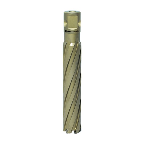 Karnasch hartmetallbestückte Kernbohrer (HardLine) werden mit konischer Spirale gefertigt für: sauberer Spanfluss und höchste Zerspanleistung auch bei schwierigen Materialien.
