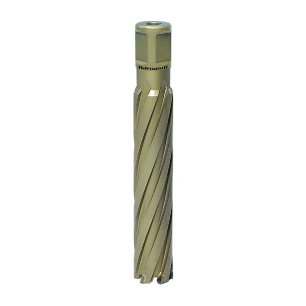 Karnasch hartmetallbestückte Kernbohrer (HardLine) werden mit konischer Spirale gefertigt für: sauberer Spanfluss und höchste Zerspanleistung auch bei schwierigen Materialien.