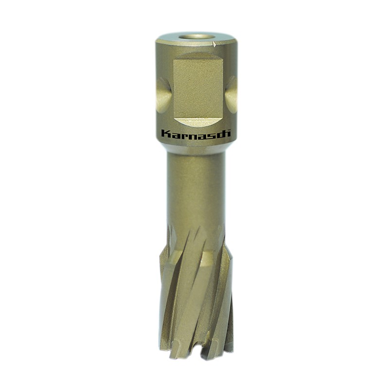 Karnasch hartmetallbestückte Kernbohrer (HardLine) werden mit konischer Spirale gefertigt für: sauberer Spanfluss und höchste Zerspanleistung auch bei schwierigen Materialien.