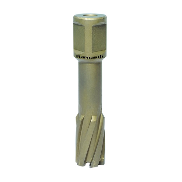 Karnasch hartmetallbestückte Kernbohrer (HardLine) werden mit konischer Spirale gefertigt für: sauberer Spanfluss und höchste Zerspanleistung auch bei schwierigen Materialien.