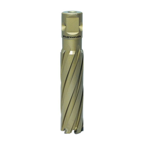 Karnasch hartmetallbestückte Kernbohrer (HardLine) werden mit konischer Spirale gefertigt für: sauberer Spanfluss und höchste Zerspanleistung auch bei schwierigen Materialien.