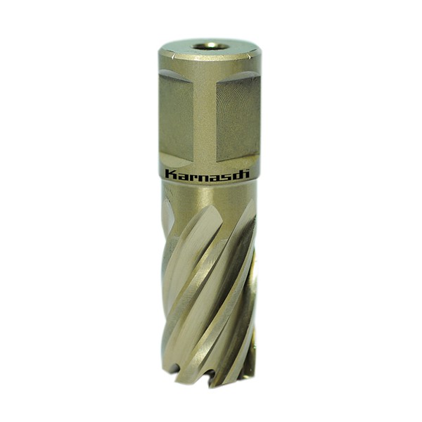 Karnasch GOLD-LINE Kernbohrer sind die am meisten verwendeten nicht beschichtete HSS-XE Kernbohrer. Durch spezial GOLD-TECH Oberflächenbehandlung + Vollschliff + HSS-XE Spezialstahl hervorragend zum Bohren in Stähle bis 900N und sogar geeignet für Edelstähle.